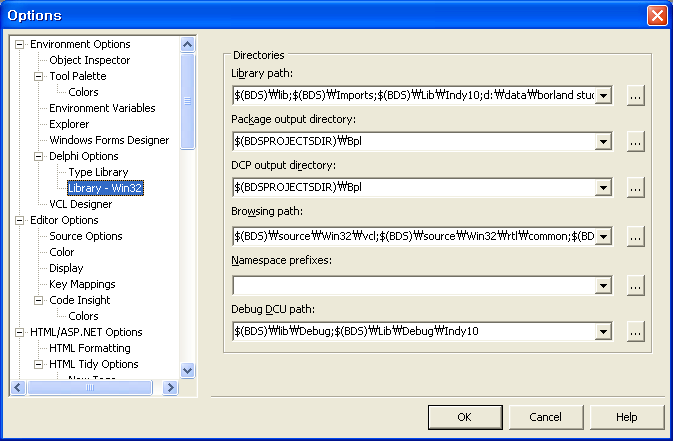 09) Options창의 Environment Options > Delpji Options > Library - Wind32에서